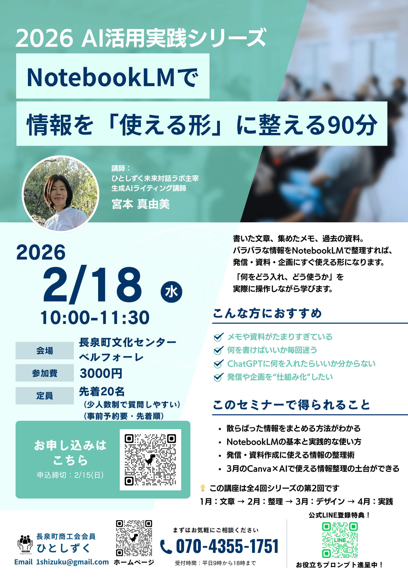 【2/18開催】2026AI活用実践シリーズ第2回講座NotebookLMで情報を「使える形」に整える90分